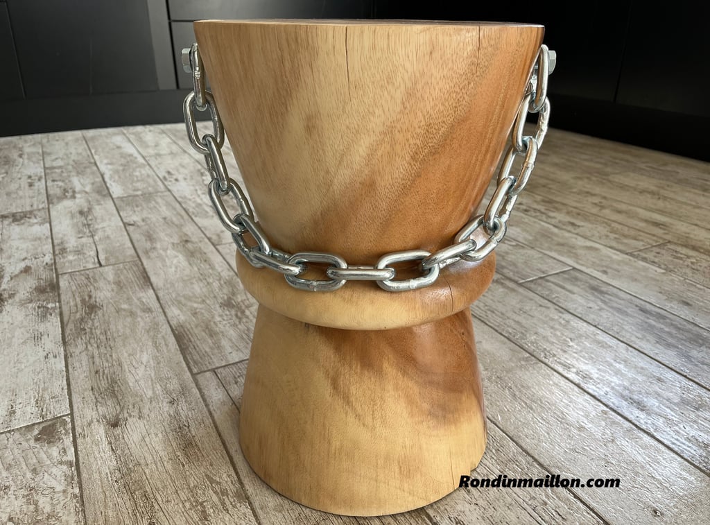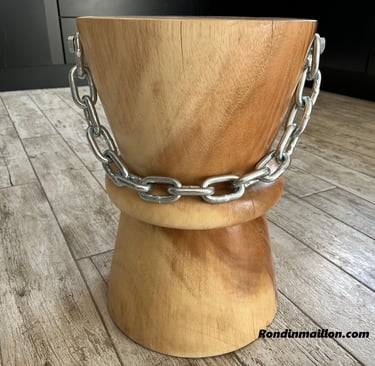 Découvrez comment l'exclusivité et l'élégance se rencontrent dans l'ameublement avec des créations uniques en rondins de bois et maillons de chaîne, conçues par un artisan unique.